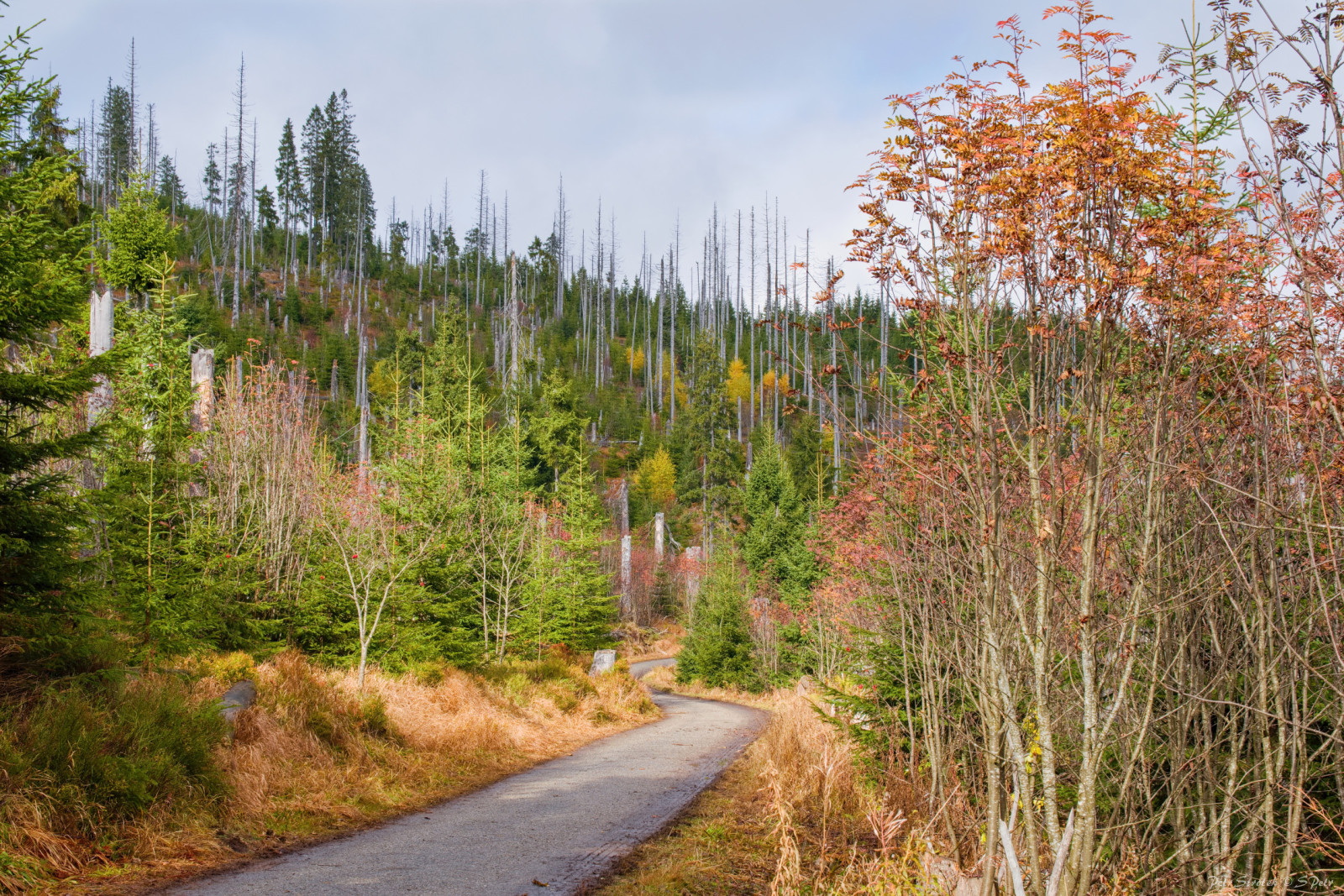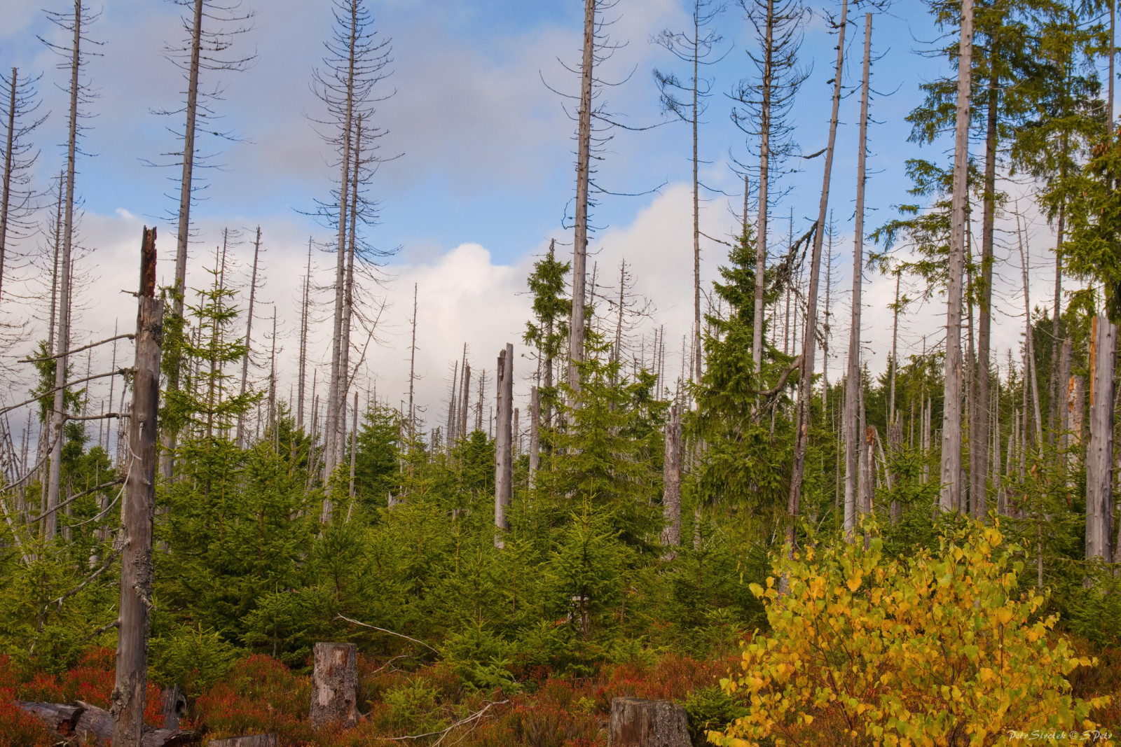 Pohled do údolí Roklanského potoka z Tříjezerní slati